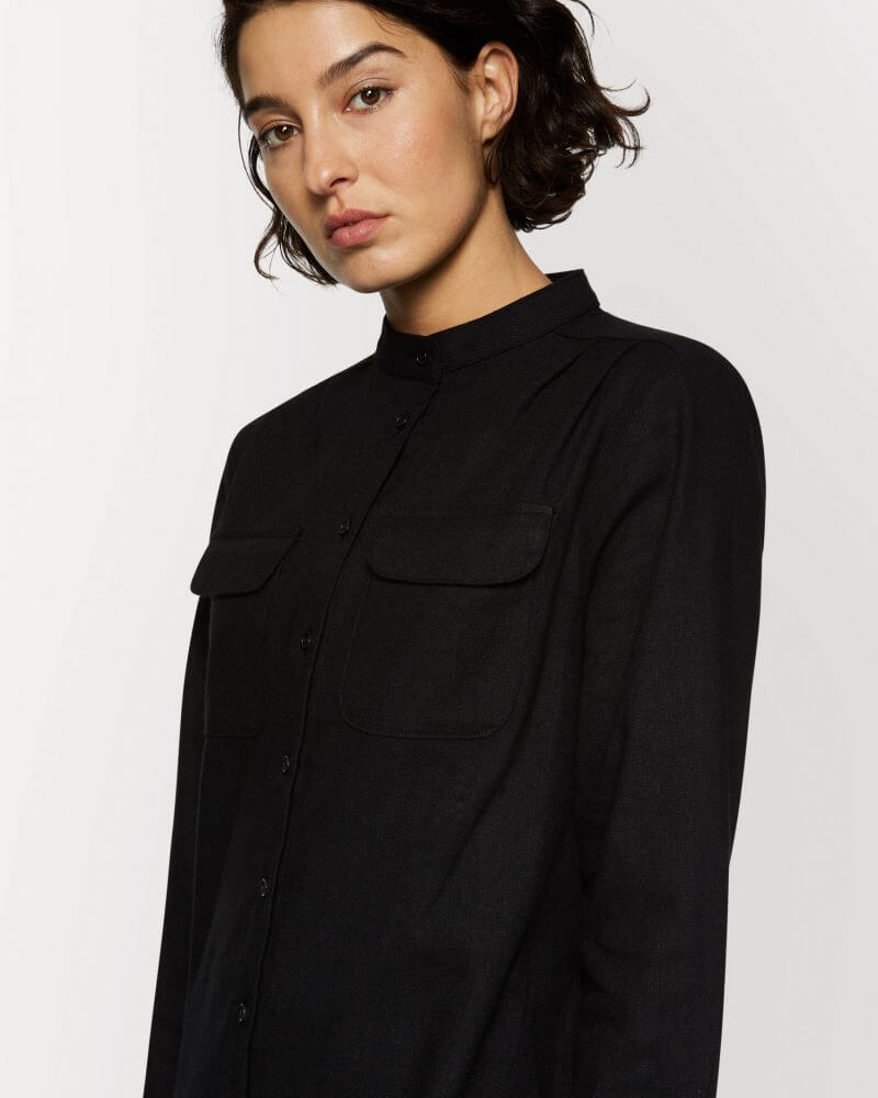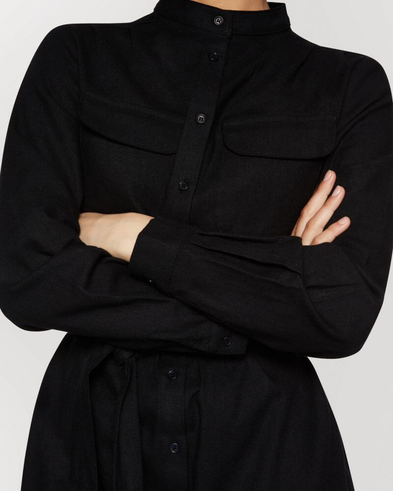 This black belted dress is made with a beautiful black cotton-linen blend fabric. Jane is a versatile item you can wear as a dress or as a long blouse – over wide, flowy pants, for instance. The belt is included but not attached so you can choose whether you feel like going for a tailored (belted) look or a more casual straight fit.